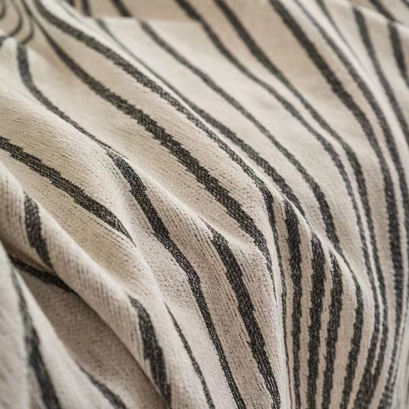 The clean striped pattern and soft color tones fit effortlessly into modern, minimalist, and Scandinavian-style interiors.
