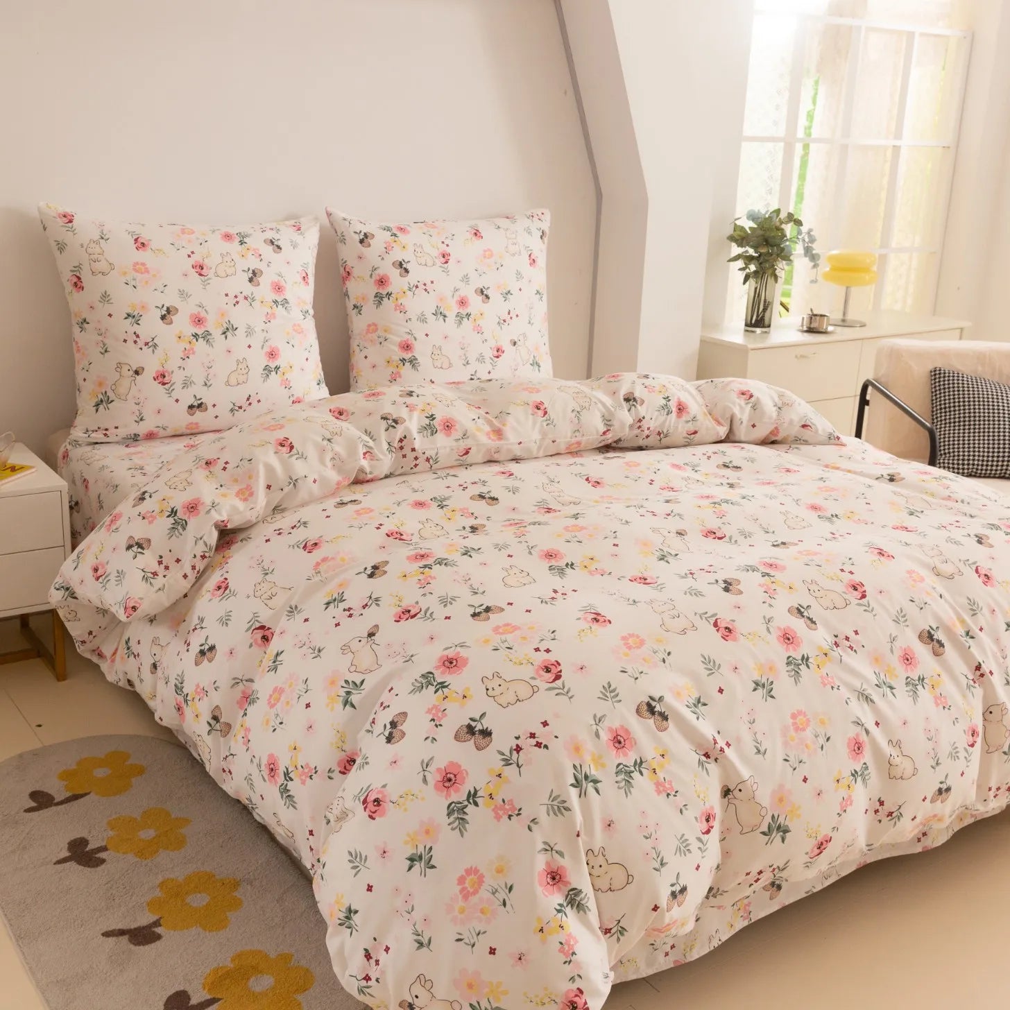 This charming bedding set features a delicate rabbit and flower pattern, designed to bring warmth and softness to your sleep space. Made for everyday comfort, it’s lightweight, breathable, and easy to care for.